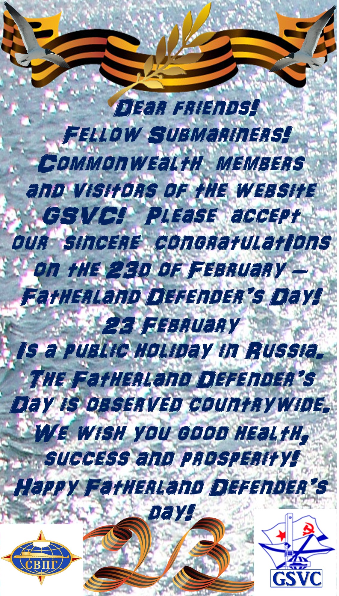 Это первая попытка создать сайт СВПГ, предпринятая в 2000 году членом Содружества, капитаном 1 ранга Тепляковым Н.А. Читайте подробнее в разделе "ИСТОРИЯ" нашего сайта. Поздравляем с юбилеем Морозова В.А.